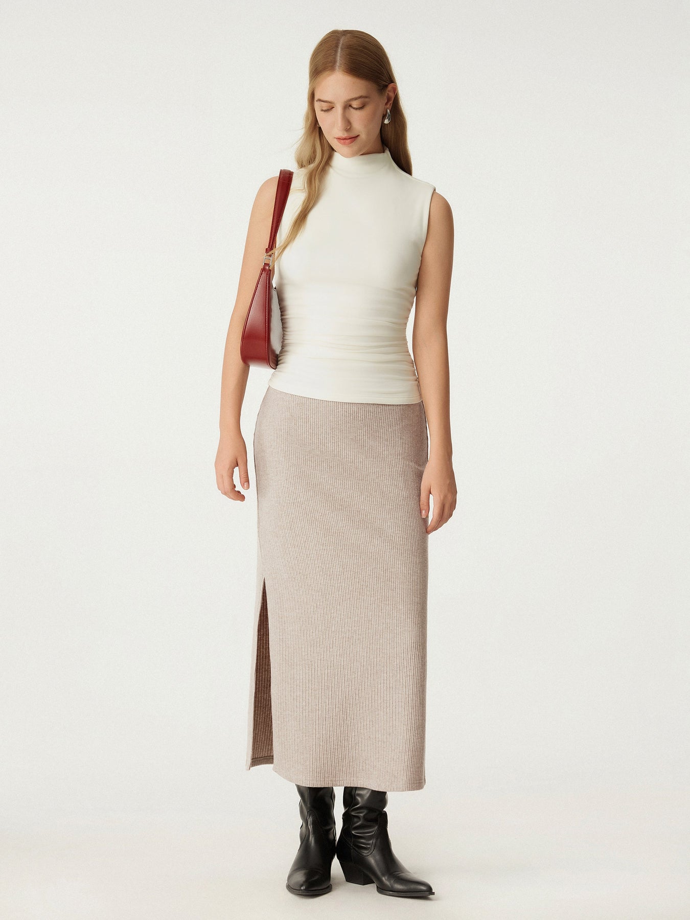 Şık Yırtmaçlı Yüksek Bel Midi Etek