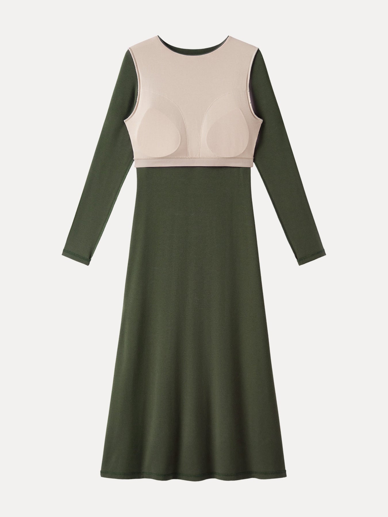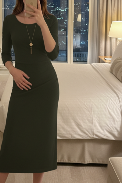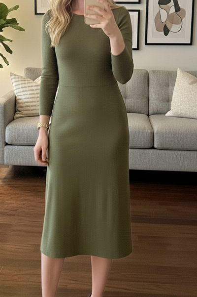 Zarif Yuvarlak Yaka Uzun Kollu Midi Elbise