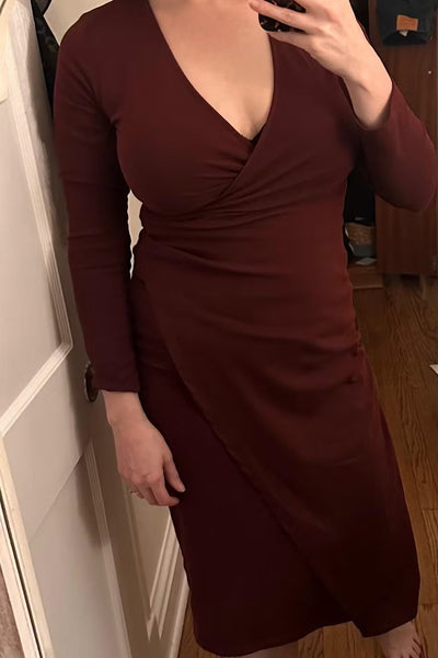 "İlk başta beden konusunda biraz tereddüt ettim ama tam oldu! Elbise mükemmel bir şekilde oturdu. Rengi ve tasarımı da çok zarif. Hem rahat hem de şık, çok beğendim!"