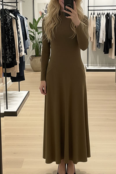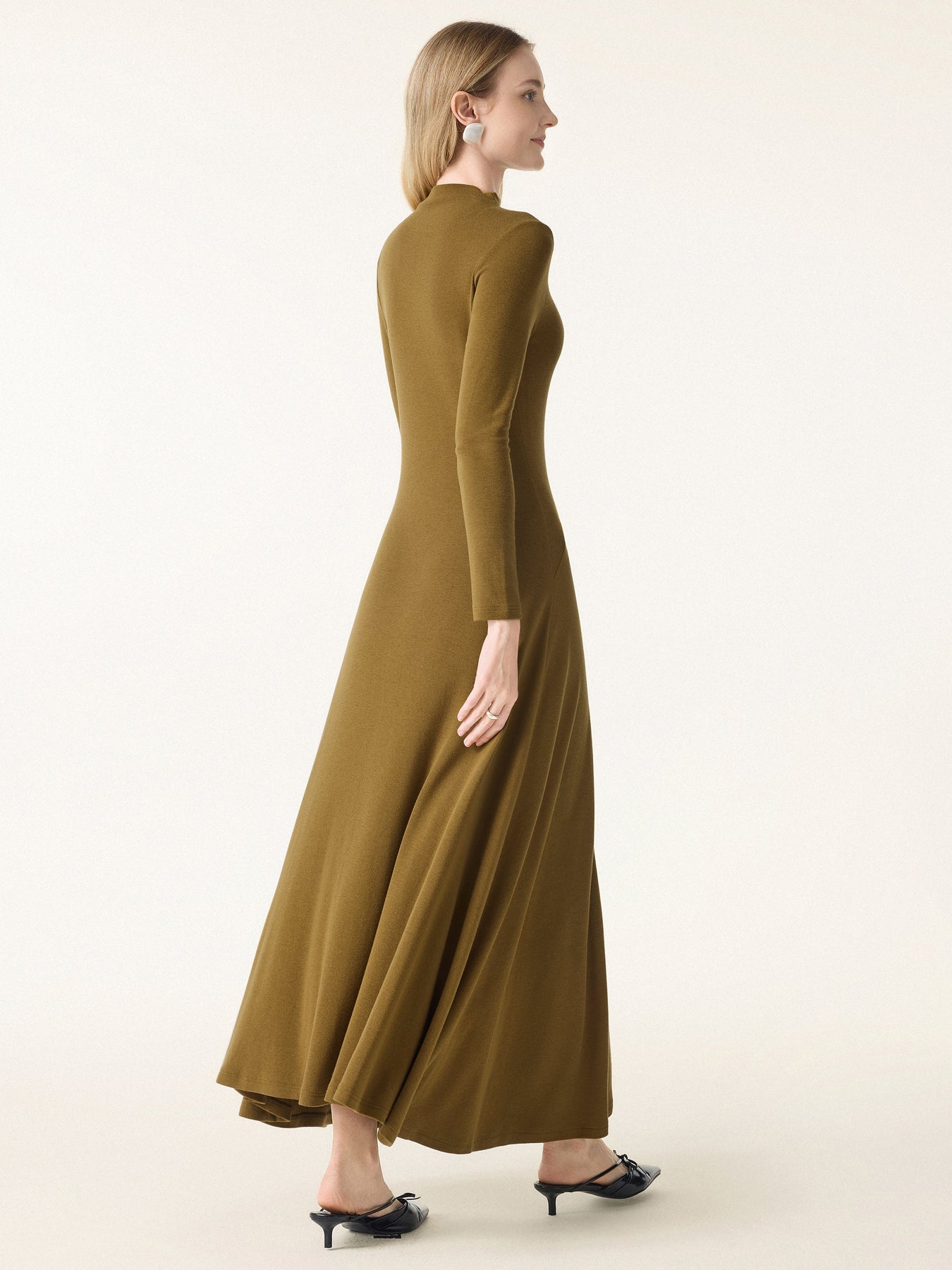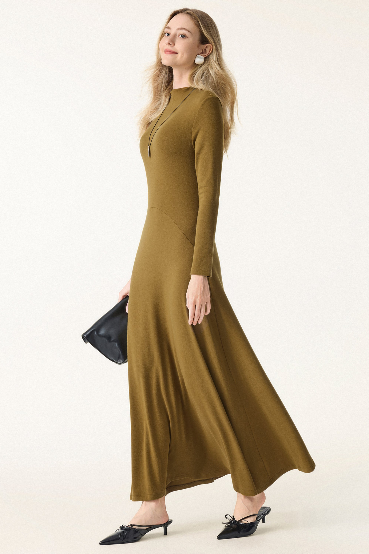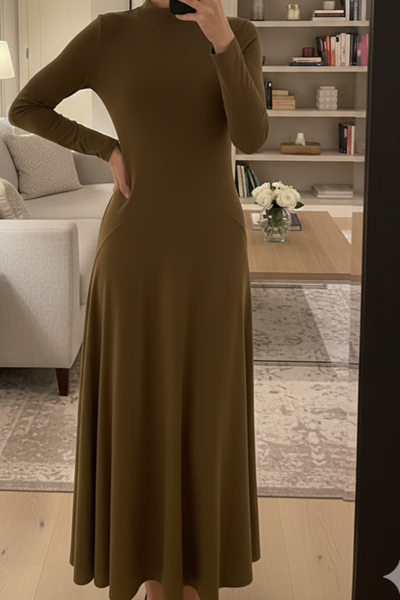 Mikrofiber Sıcak Yüksek Yaka Maxi Elbise