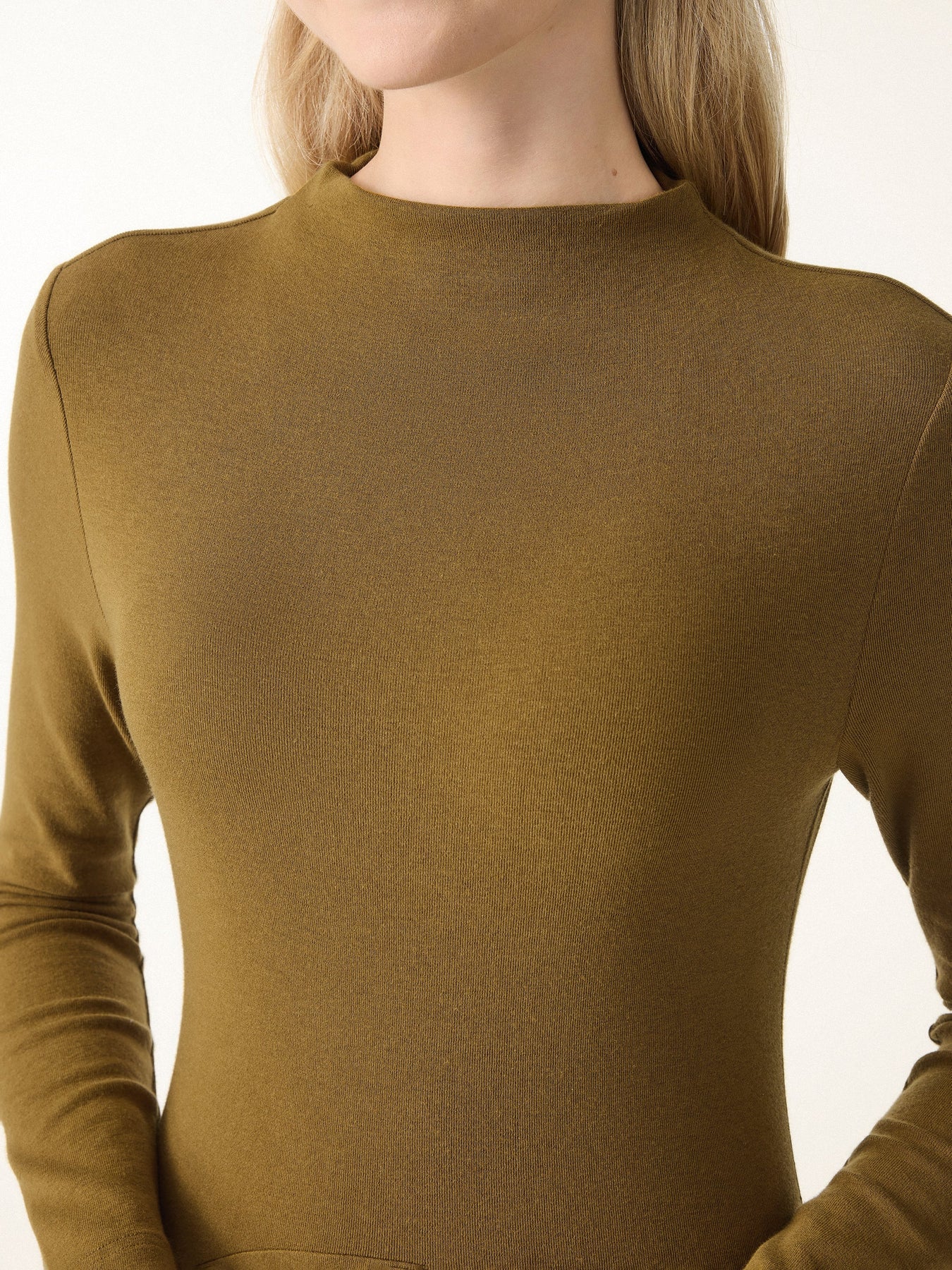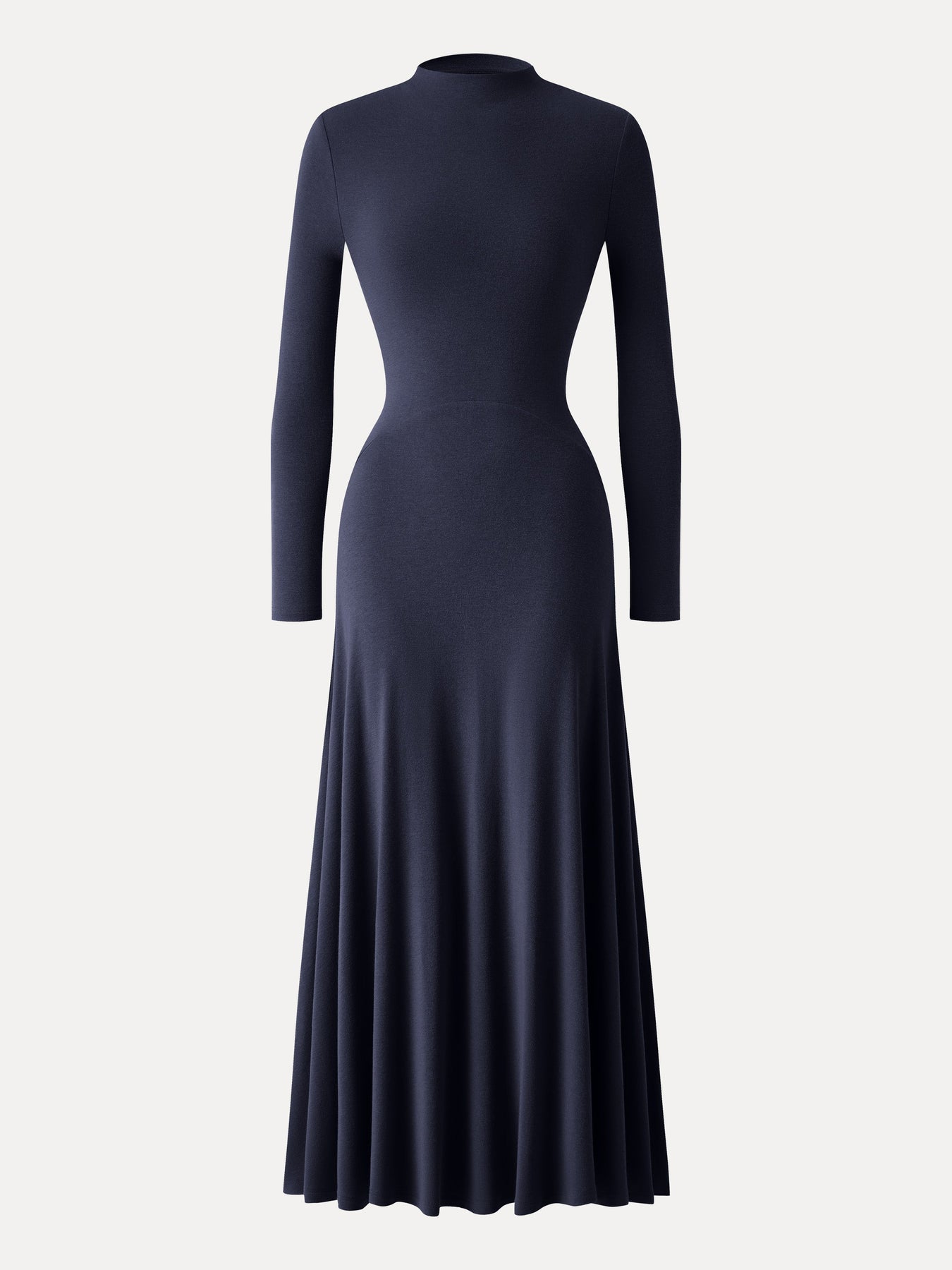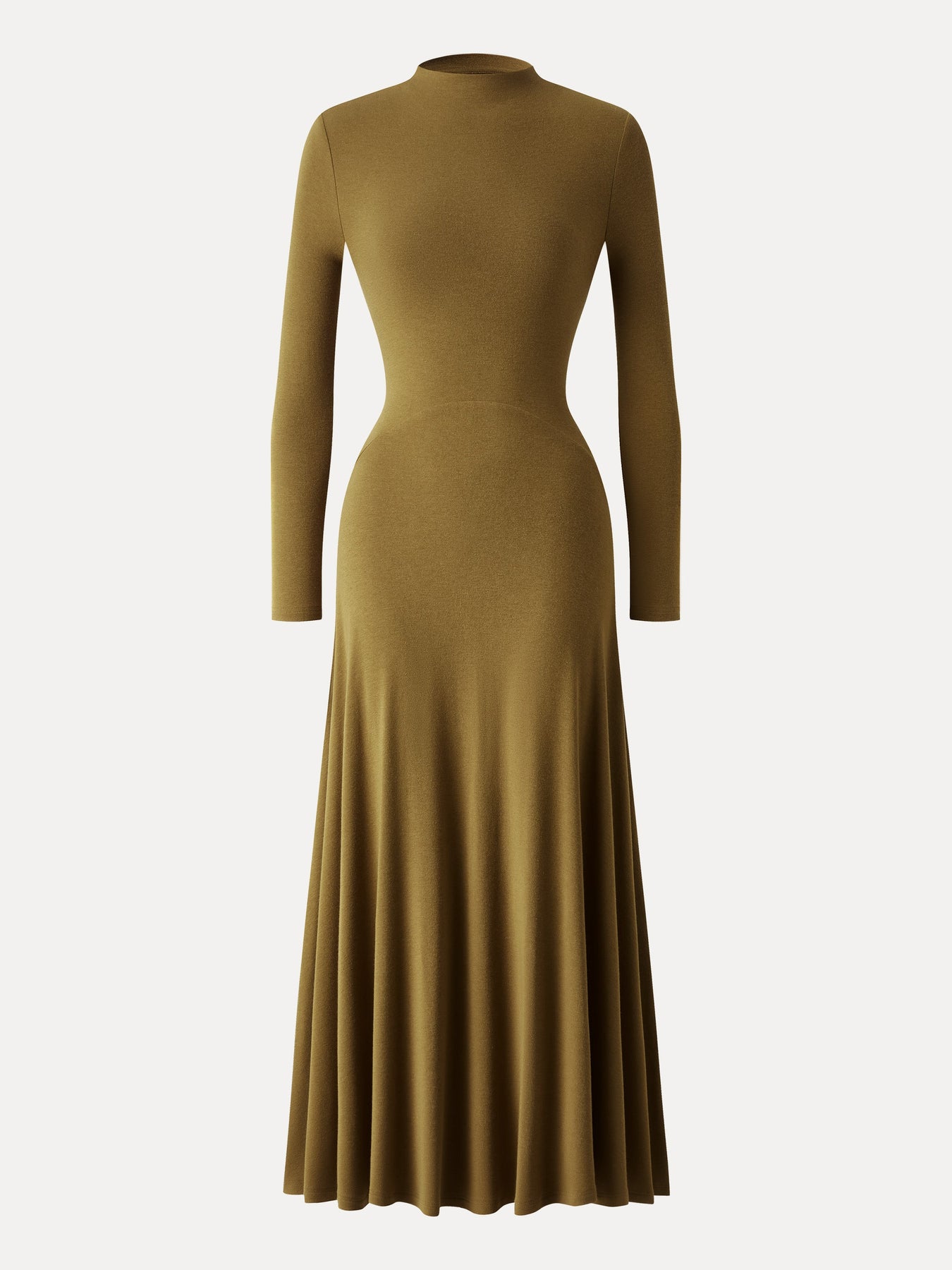 Mikrofiber Sıcak Yüksek Yaka Maxi Elbise