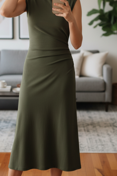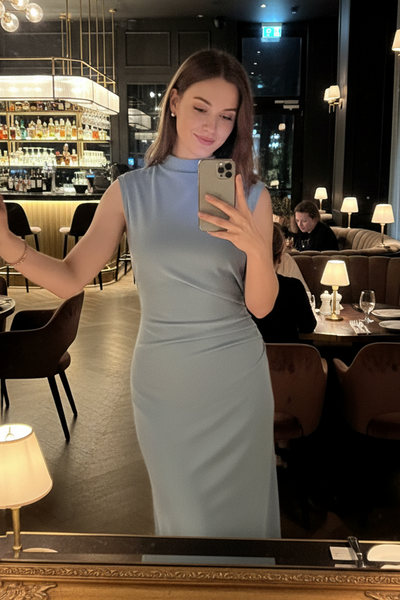 "Bence bu elbise şıklığı ve rahatlığı bir arada sunuyor. Duruşu gerçekten güzel ve çok zarif. Çalışan bir kadının dolabında olması gereken parçalar arasında bence😊😍"