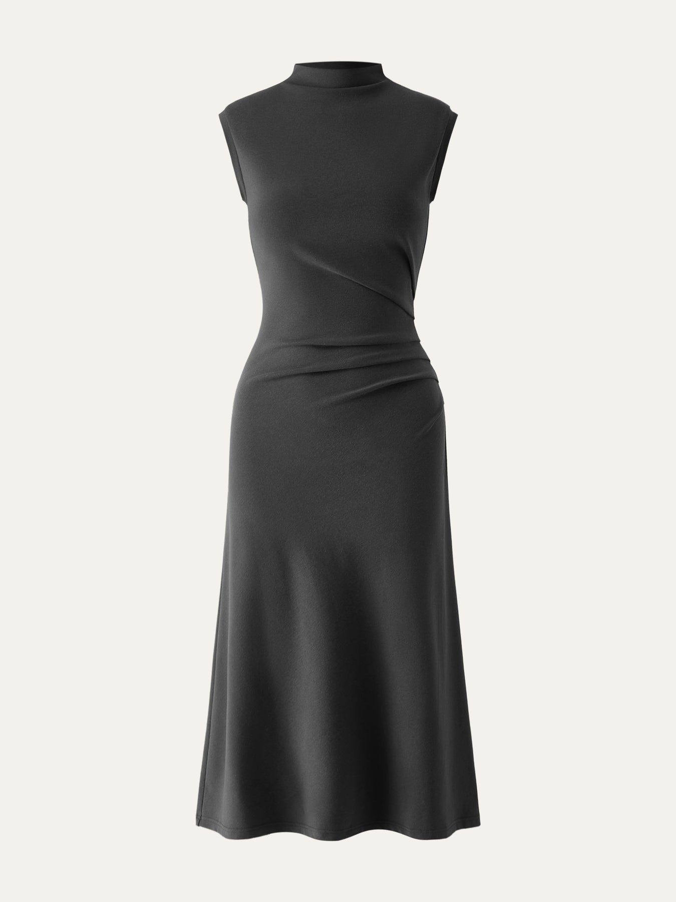 Şık Uzun Kollu ve Yüksek Yaka Midi Elbise