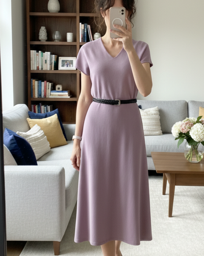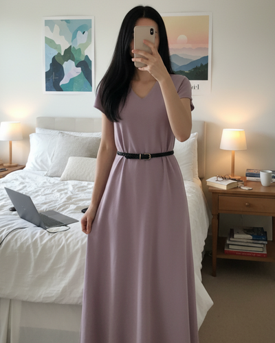 “Rengi harika, lavanta tonları gerçekten göz alıcı. Elbise o kadar konforlu ki sanki hiç bir şey giymiyormuşum gibi hissediyorum. Hem sıcak havalarda hem de serin akşamlar için ideal.”