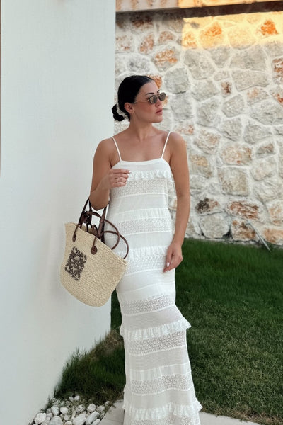 Elbise, %100 pamuktan üretilmiştir; bu kumaş yumuşak, nefes alabilir ve tüm gün boyunca rahat bir kullanım sağlar.