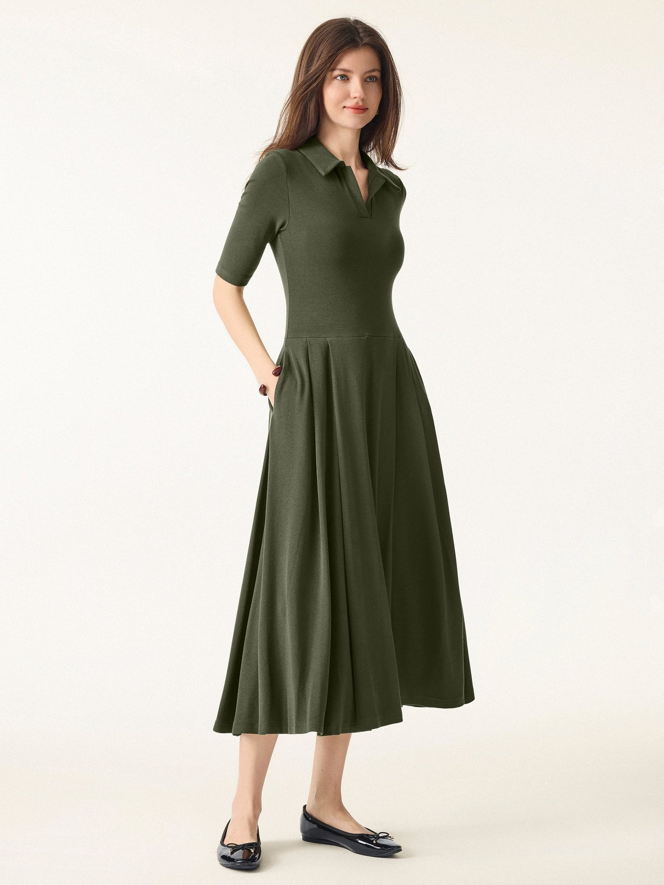 Elbise, %100 pamuktan üretilmiştir; bu kumaş yumuşak, nefes alabilir ve tüm gün boyunca rahat bir kullanım sağlar.