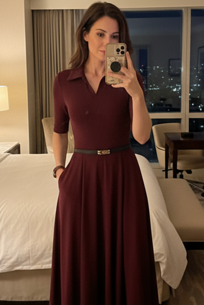 "Yalnızca rahat değil, aynı zamanda gayet zarif bir havası var. Hem iş yerinde hem de dışarıda giyilebilecek bir elbise."