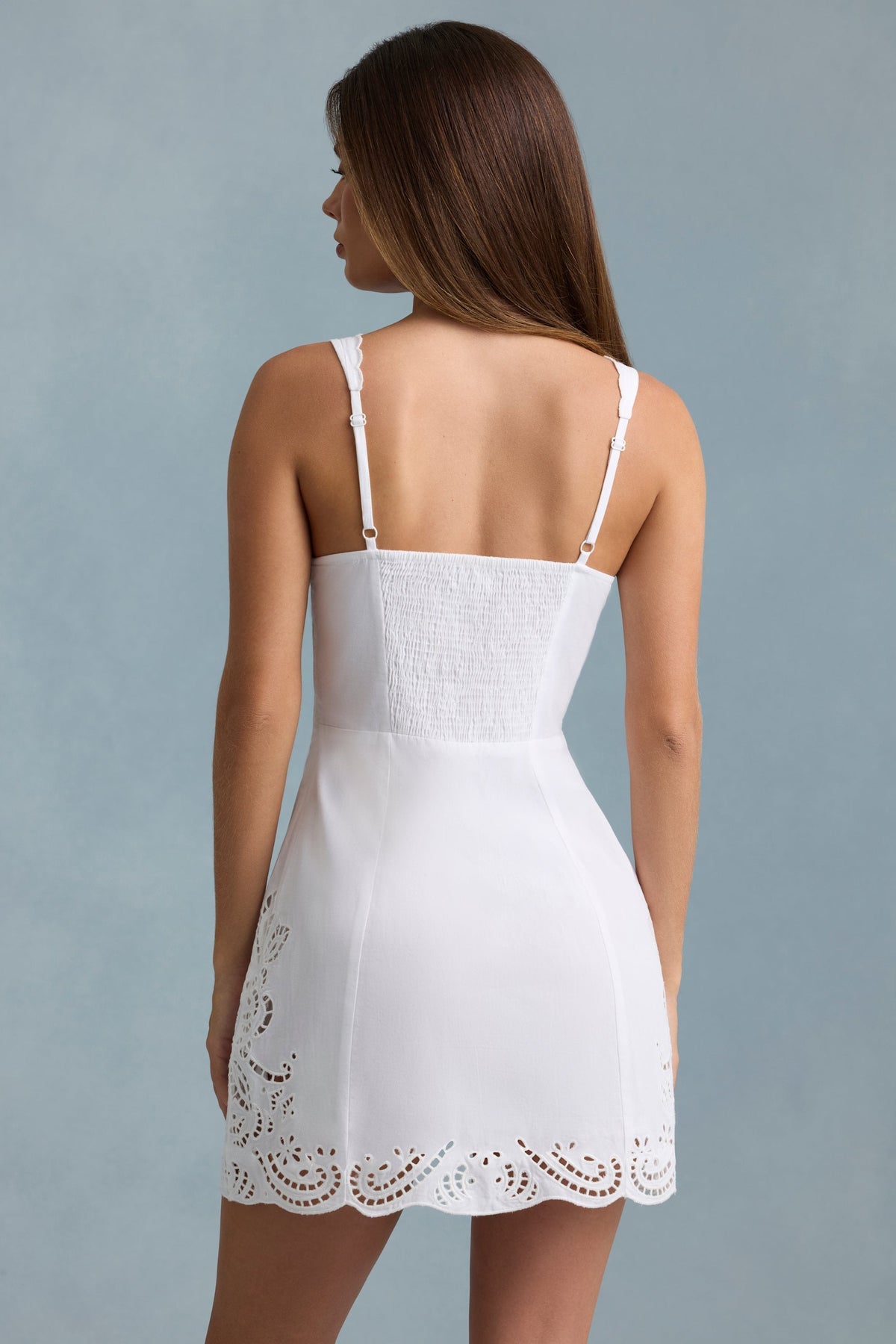 Şık Beyaz İşlemeli Pamuk Şupalı A Kesim Mini Elbise