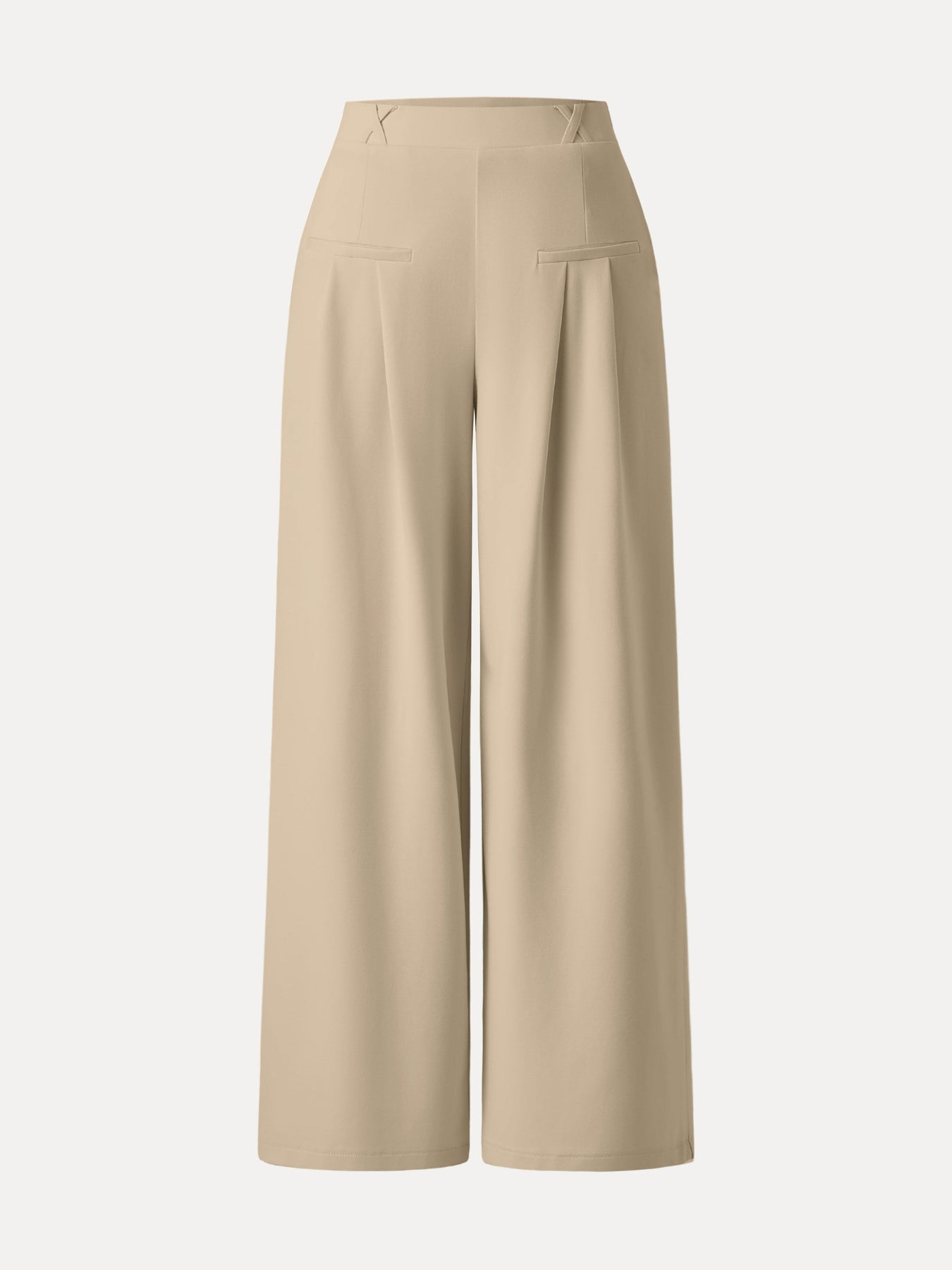 Bambu Ponte Geniş Paça Pantolon Orta Bel ve Cep Detaylı